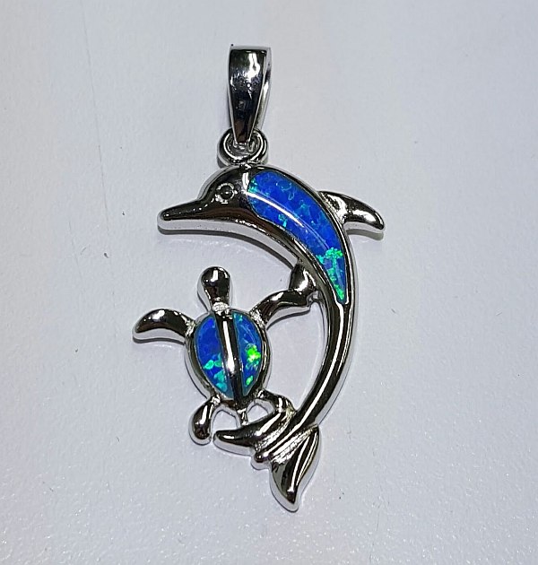 Synthetic Opal Inlay Wing with Oval Amethyst CZ on top of Slider Pendant