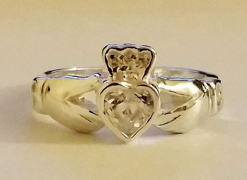 Claddagh Ring w/ Clear CZ Heart Size: 10