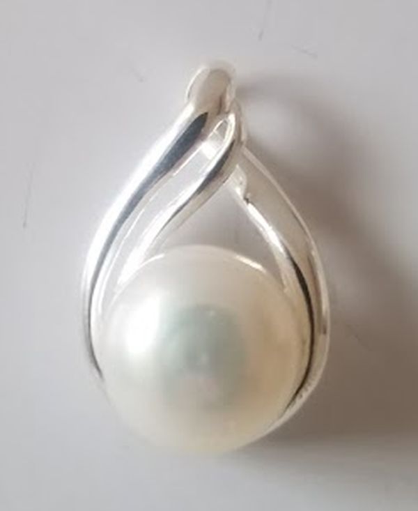 10mm Freshwater Pearl on the bottom of solid Teardrop leaf like Pendant Dim: 2" H x 0.75" W Metal: 925 Sterling Silver |