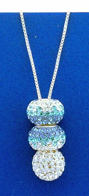 Crystal Ball Pendant & 2 Beads on BOX-12 Necklace Color: Light Blue Graduating Length: 18"